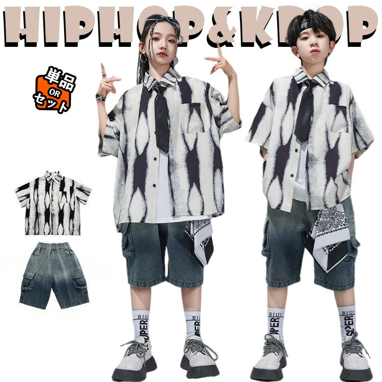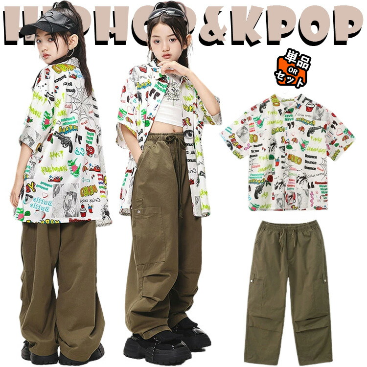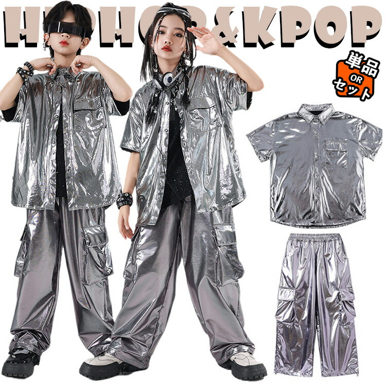 シルバー ファッション キッズ ダンス衣装 セットアップ 女の子 男の子 ゆったり ピッタリ シャツ セット かっこいい 半袖 カジュアルシャツ トップス hiphop カーゴパンツ おしゃれ