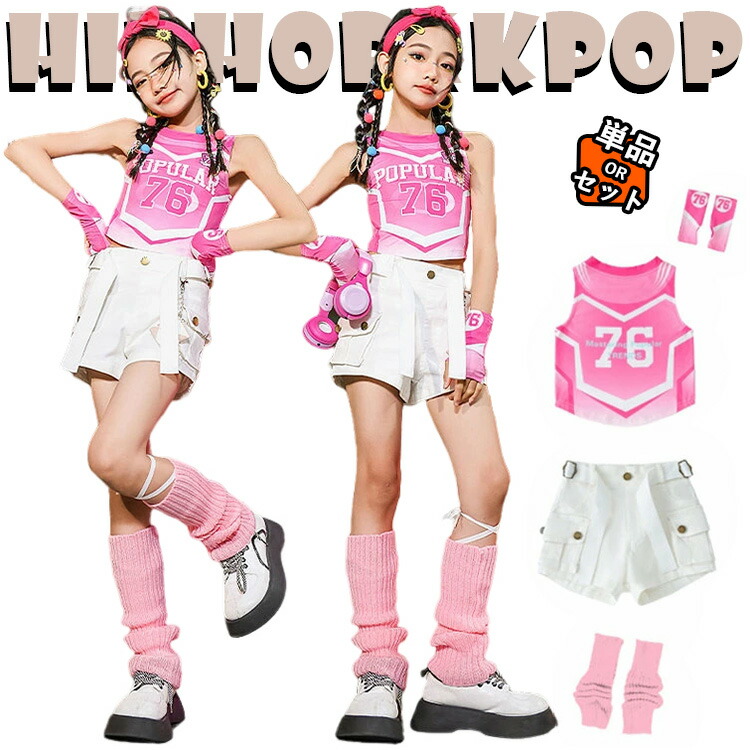 ショート丈 ノースリーブ ピンク タンクトップ キッズ ダンス衣装 セットアップ 女の子 おしゃれ へそ出し ショートトップ トップス ジャズダンス ヒップホップ 韓国 k-pop ギャル系