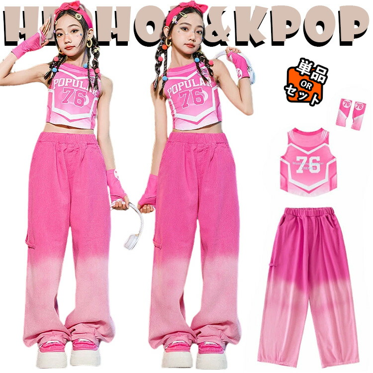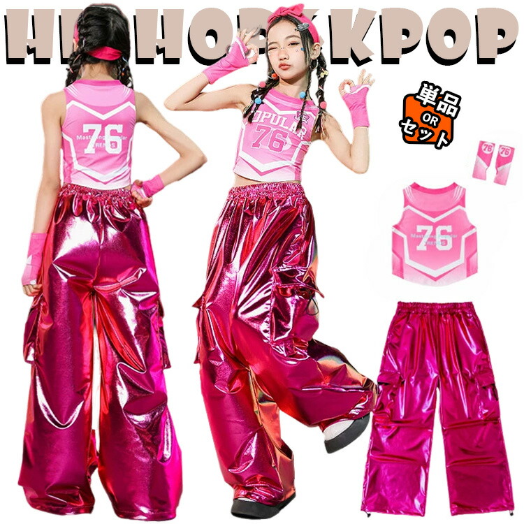キッズ ダンス衣装 セットアップ 女の子 韓国 k-pop トップス キラキラ ピンク パンツ カーゴパンツ おしゃれ タンクトップ へそ出し 子供 かっこいい ゆったり ヒップホップ ジャズ