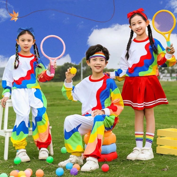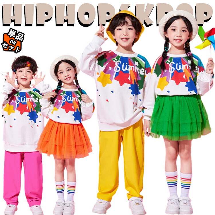 小学生 クラス服 総柄 5色 長袖 スウェット チュチュ スカート パンツ 上下セット キッズ ダンス衣装 女の子 男の子 春 夏 秋 発表会 セット 可愛い カジュアル ゆったり 子供服 中学