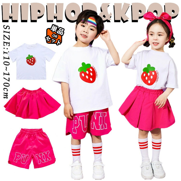 小学生 クラス服 発表会 上下セット 女の子 男の子 可愛い ローズ 白色 夏 春秋 半袖 シャツ スカート 短パン 半ズボン プリーツスカート 総柄 キッズ ダンス衣装 セットアップ