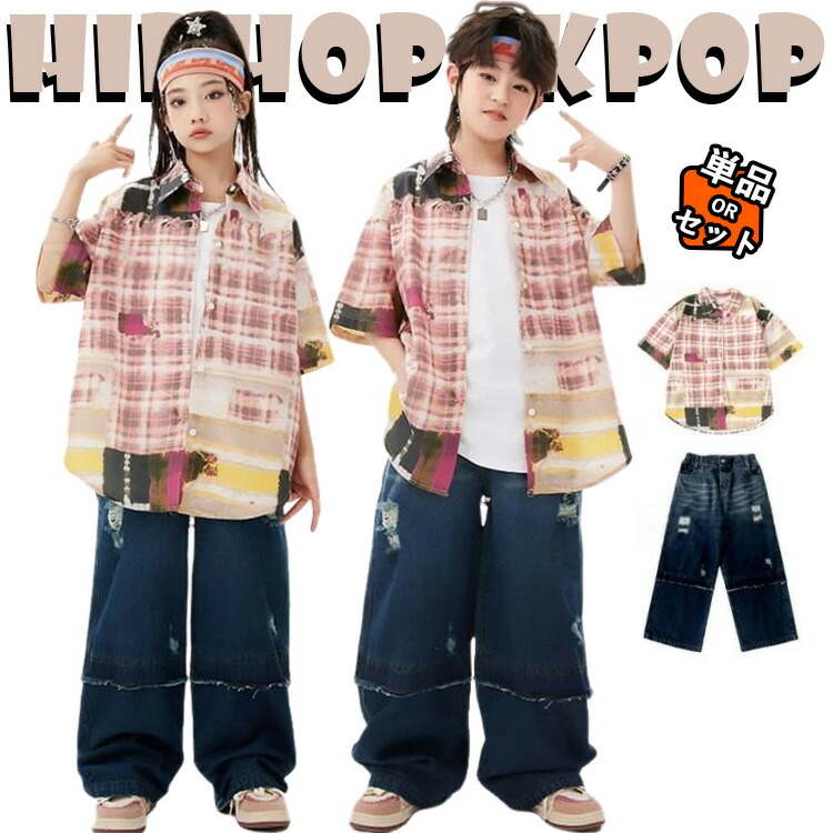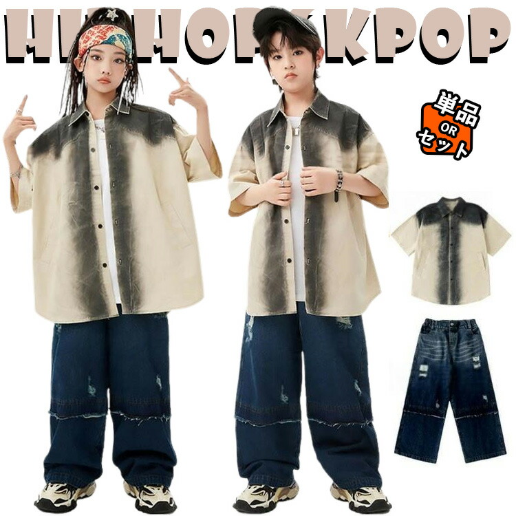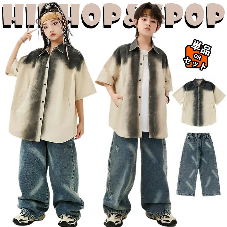 杏色 カジュアルシャツ ブルー デニムパンツ キッズ ダンス衣装 セットアップ 上下セット おしゃれ 女の子 男の子 かっこいい かわいい 半袖 トップス タンクトップ ダンスウエア ヒ
