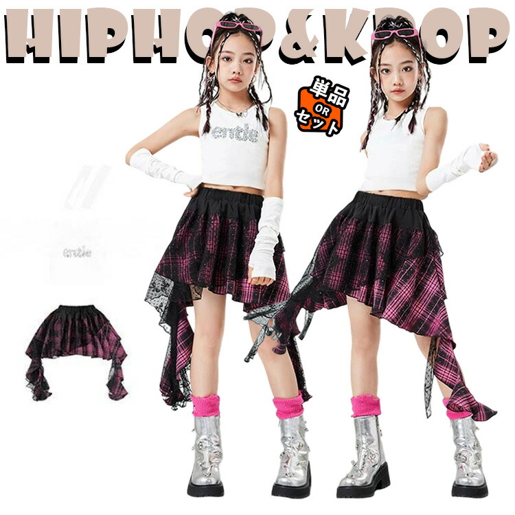 jazz 白 タンクトップ 腕カバー ローズ チェック柄 スカート 足カバー キッズ ダンス衣装 韓国 セットアップ おしゃれ 女の子 かっこいい かわいい ゆったり トップス ヒップホップ