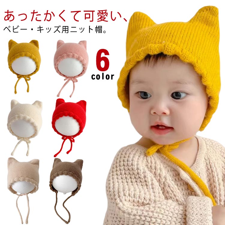 ベビー キッズ用 ニット帽 キッズ ベビー 帽子 ニット帽 ニットキャップ 赤ちゃん 猫耳 耳付き 耳つき ニット 帽子