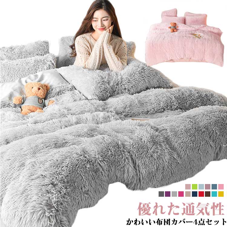 布団カバーセット 柔らかい 掛け布団カバーセット 4点セット あったか 秋冬 厚手 静電気防止加工 無地 子供 大人