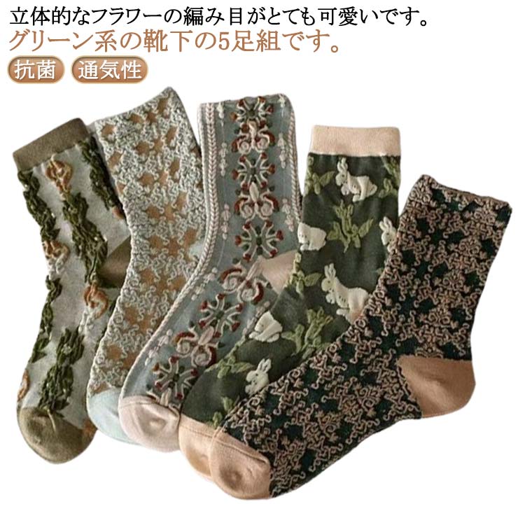 足元を華やかに演出 立体的 花柄 綿 抗菌 通気性 伸縮性 蒸れない コットン レディース クルーソックス 秋 冬