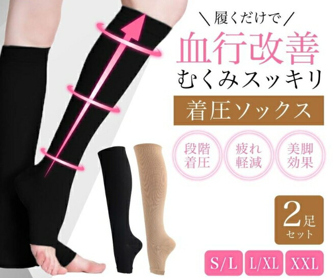 着圧ソックス 2足セット 医療用 弾性ストッキング ふくらはぎサポーター加圧 寝るとき むくみ 靴下 メンズ レディース