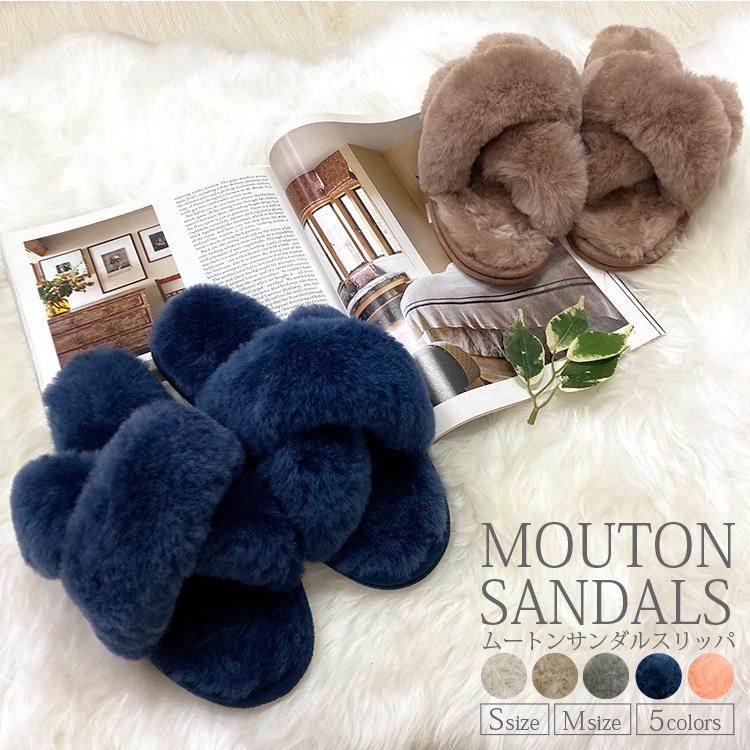 スリッパ ムートン サンダル ムートンスリッパ レディース ふわふわ あたたか 暖 ルームシューズ 暖かい おしゃれ 室内 かわいい 北欧