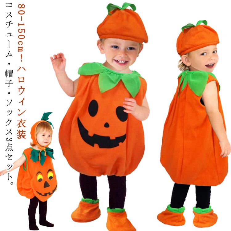 3点セット ハロウィン 衣装 子供 仮装 ハロウィン コスプレ 仮装 かぼちゃ パンプキン パーティーグッズ イベント用品 キッズ こども 男の子 女の子