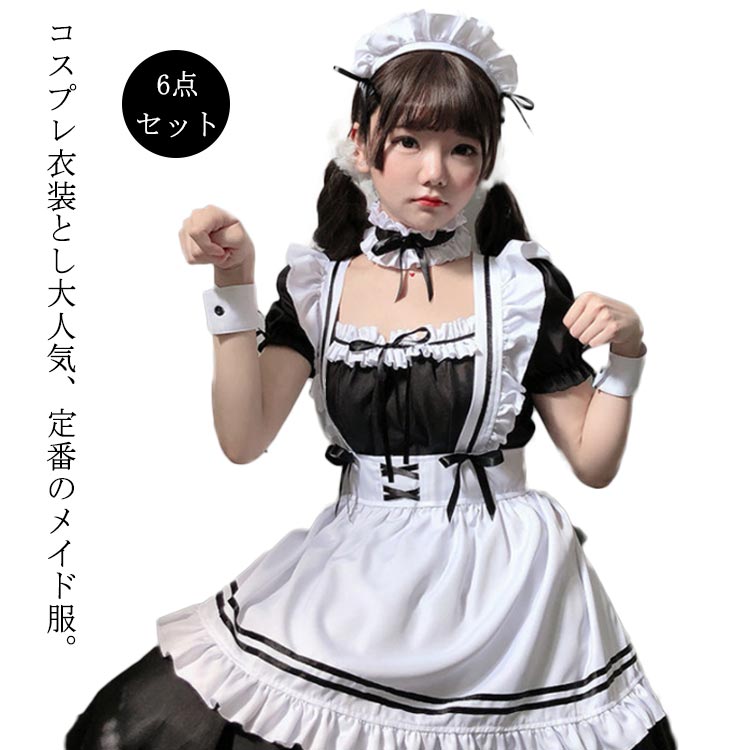 6点セット メイド服 衣装 ロリータ ワンピース かわいい コスチューム コスプレ衣装 大人用 女性 ハロウィン