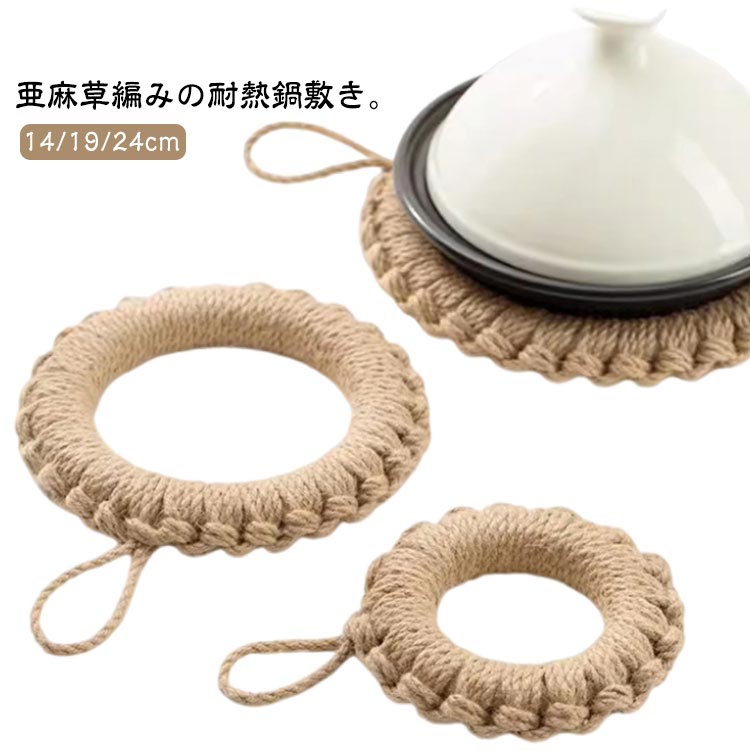 亜麻草編みの耐熱鍋敷き 自然な素材を使ったエコな鍋しきです 鍋敷き おしゃれ 北欧 耐熱 丸型 ドーナツ型 お洒落 可愛い