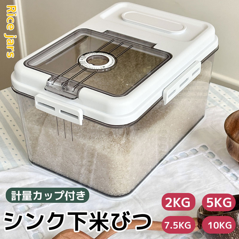 5 10 密閉米びつ 計量カップ付 米びつ スリム シンク下 冷蔵キッチン用品 食器 調理器具 保存容器 調味料入れ 米びつ