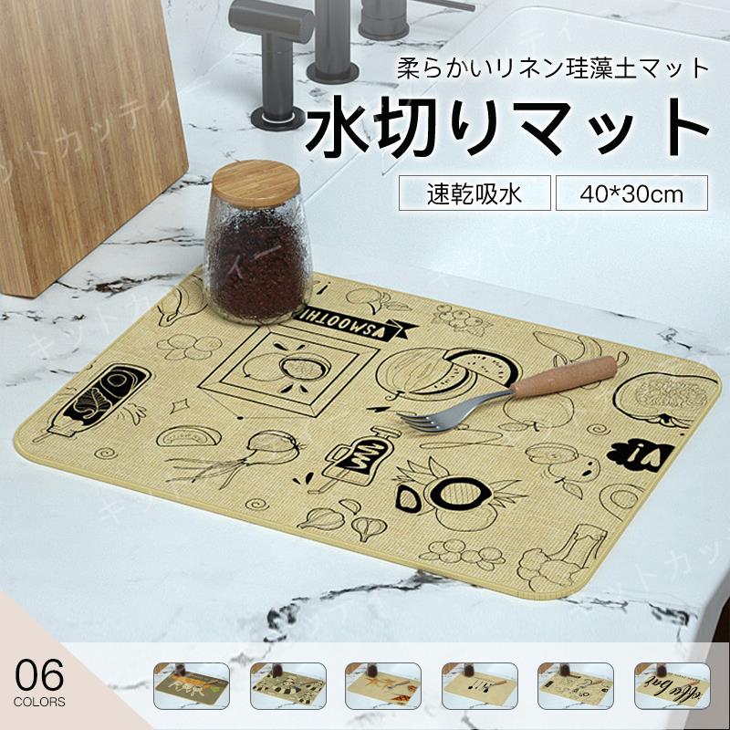 2025年新品 リネン 珪藻土 吸水マット キッチンカウンター用 乾燥マット カップ 皿用 免洗 防水 断熱 マット