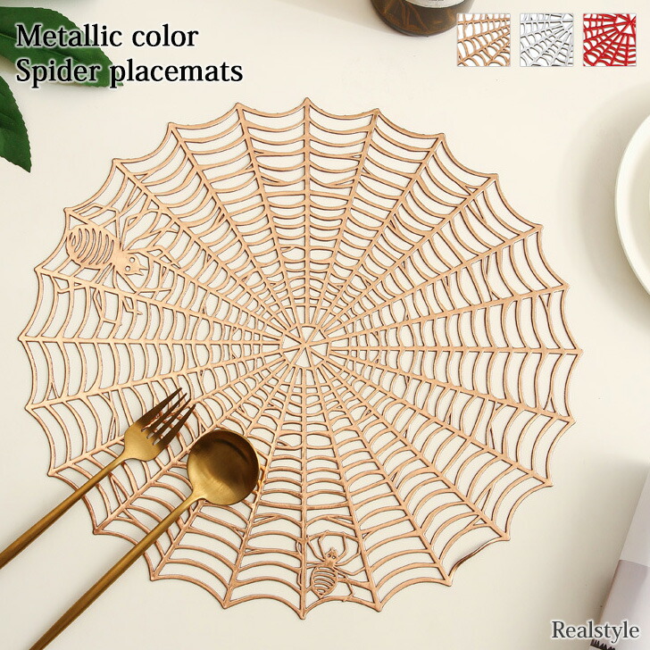 ハロウィン スパイダー ランチョンマット メタリックカラー おしゃれ テーブルマット 北欧 プレイスマット パーティー 撮影 SNS グッズ イベント おしゃれ かわいい 敷物 食卓 テーブルコーディ