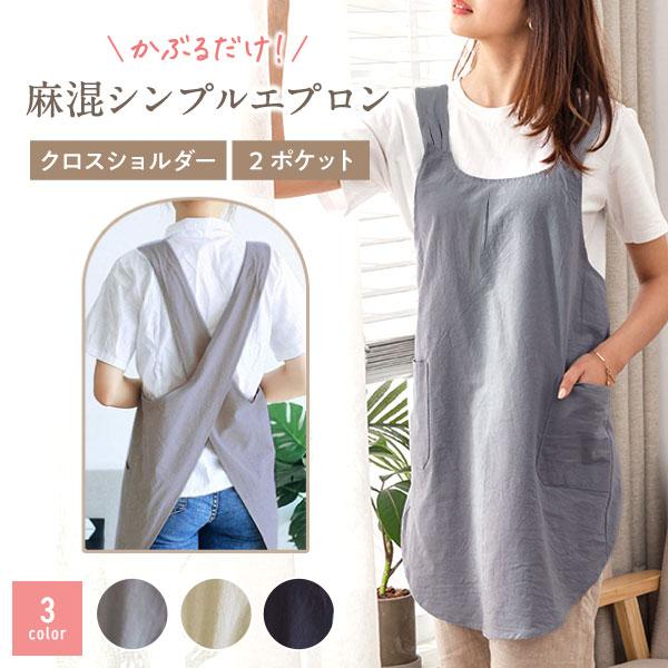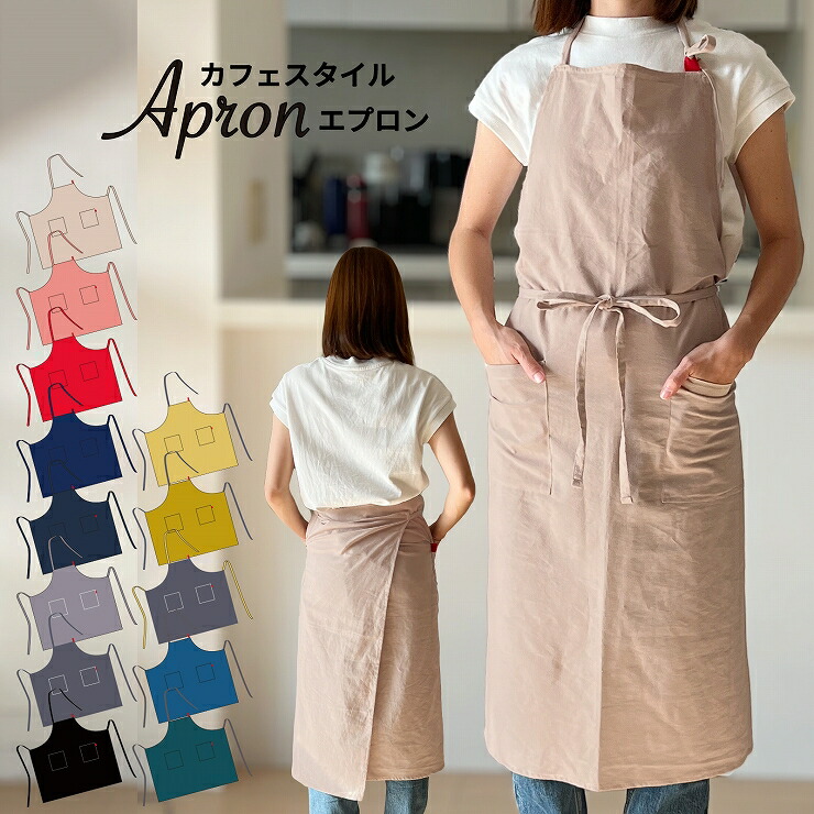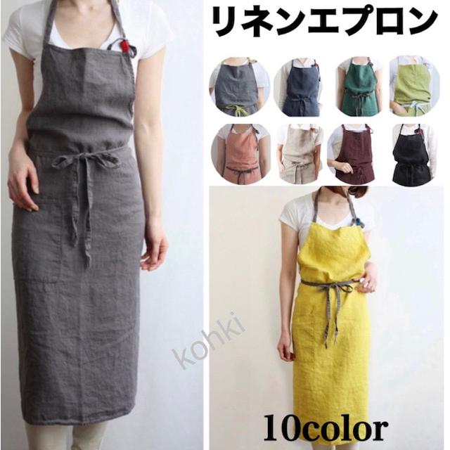 エプロンリネンリネンエプロン首掛けシンプルカフェカフェ風無地おしゃれ業務用業務用エプロンポケット付き10色