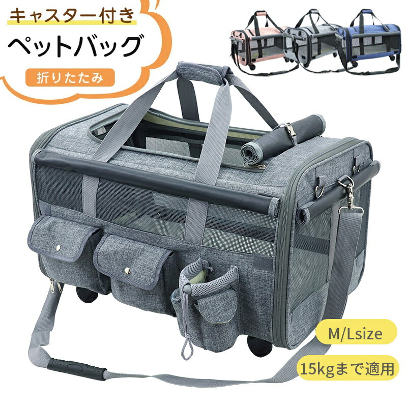 ペット用キャリーカート Mサイズ Lサイズ 4way キャスター付き キャリー コンテナ 15kgまで ペットキャリー