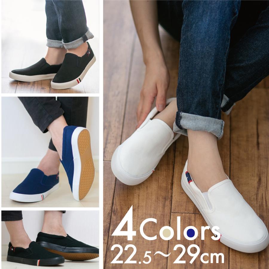 スリッポン メンズ レディース デッキシューズ キャンバス シンプル フラット 旅行 ブラック ホワイト ネイビー