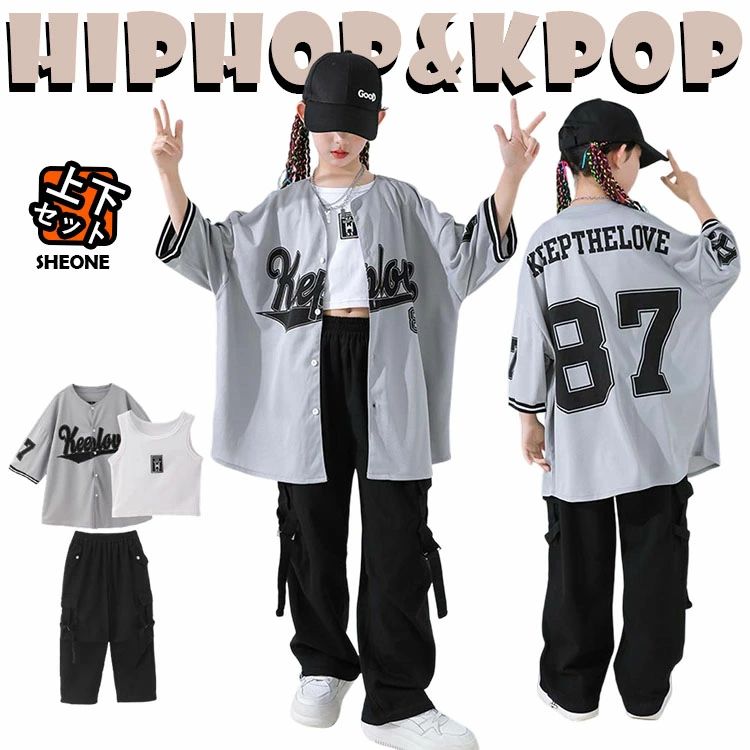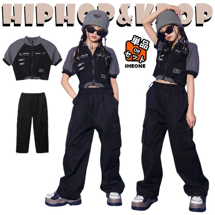 灰色 キッズ ダンス 衣装 発表会 サルエルパンツ ヒップホップ 韓国 ダンス衣装 セットアップ 半袖tシャツ ショート トップス へそ出し ロング カーゴパンツ ゆったり ストリー