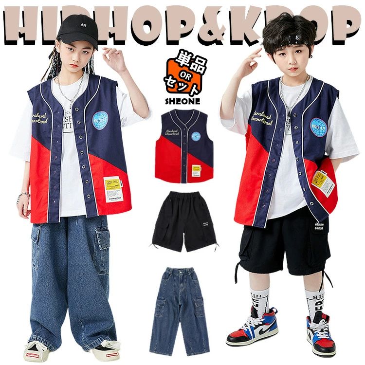 ベスト 半袖 夏 キッズ ダンス衣装 セットアップ デニムパンツ ショートパンツ カジュアル パンツ カジュアルシャツ ダンスウェア ヒップホップ ジャズダンス ポッピング 演出服 練習