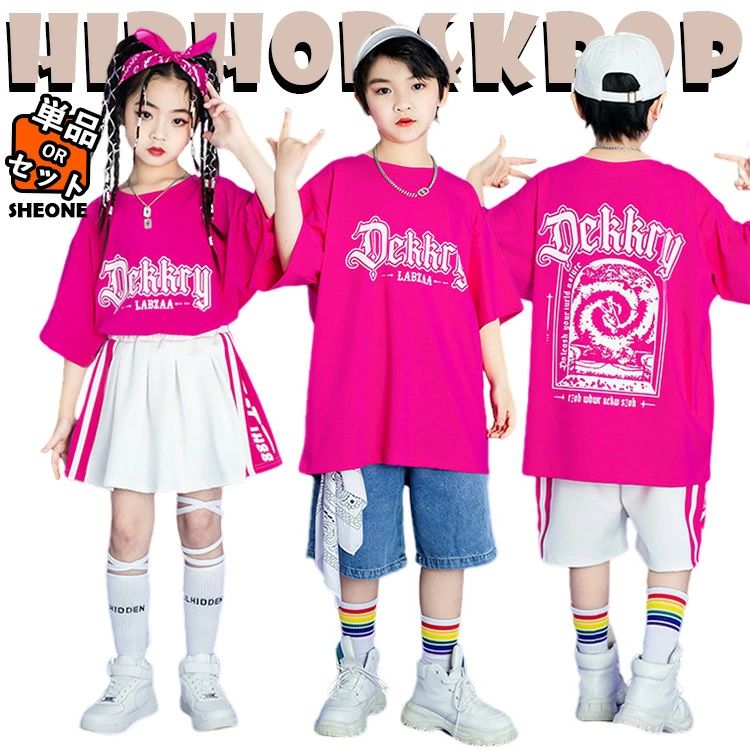 チア キッズ ダンス衣装 セットアップ 男の子 女の子 かっこいい チアガール かわいい ピンク トップス ピンクホワイト 短パン スカート デニム短パン おしゃれ ファッション ヒップ