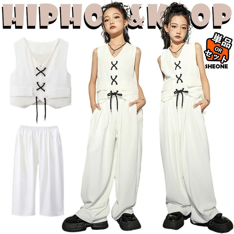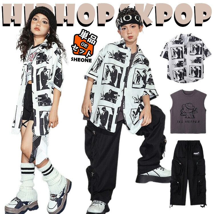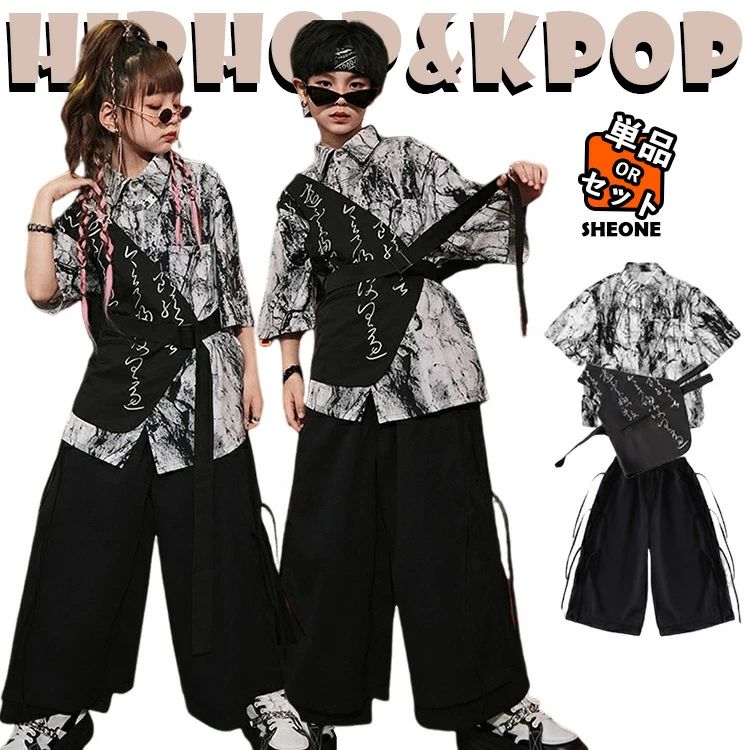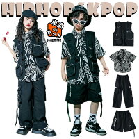 和風 暗闇系 キッズ ダンス衣装 セットアップ 黒 ブラック かっこいい 半袖シャツ Tシャツ カーゴパンツ ワイドパンツ ベスト ダンスパンツ ジャズダンス ヒップホップ 韓国k-pop 演