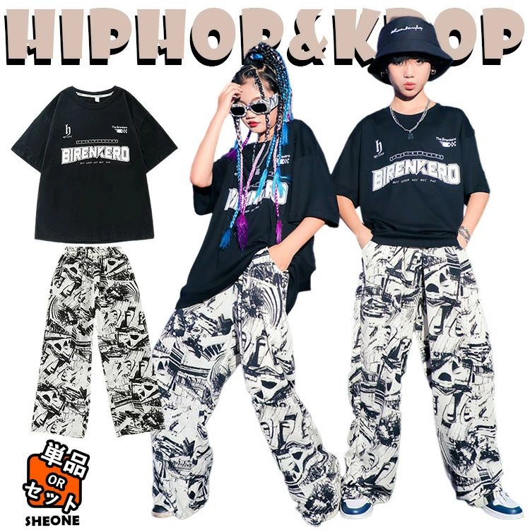 黒 総柄 総柄シャツ タイダイ 半袖 夏 キッズ ダンス衣装 男の子 女の子 トップス パンツ セットアップ かっこいい カジュアルシャツ ダンスウェア ヒップホップ ジャズダンス ポッピ