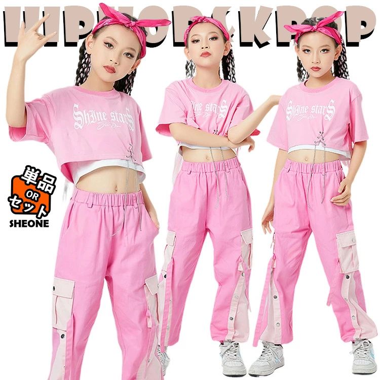 ピンク jazz 半袖 キッズ ダンス衣装 かっこいい 女の子 かわいい おしゃれ セットアップ ゆったり トップス パンツ 頭巾 ジャズダンス ヒップホップ ヘソ出し 団体服 韓国 kpop 発