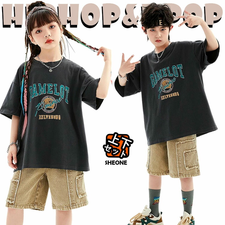 カーゴパンツ 柄シャツ キッズ ダンス衣装 女の子 男の子 かっこいい セットアップ トップス パンツ カジュアルTシャツ ダンス ダンスウェア 上下セット ヒップホップ ジャズダンス