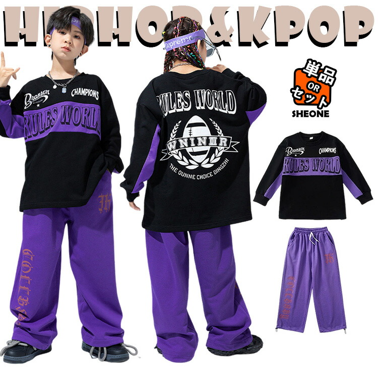紫 パープル 個性派 キッズ ダンス衣装 女の子 男の子 トレーナー かっこいい セットアップ トップス パンツ カジュアルシャツ ダンス ダンスウェア 上下セット ヒップホップ ジャズ