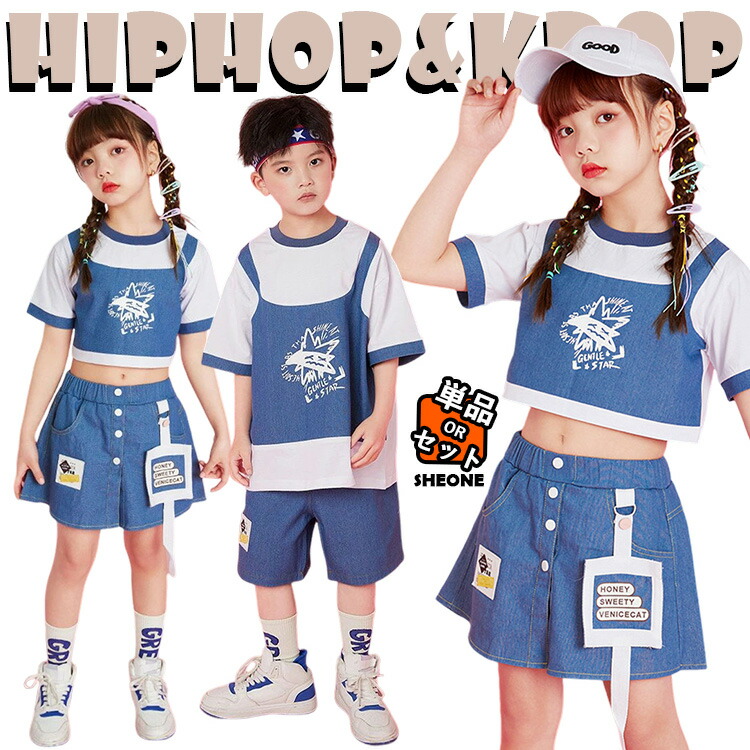 デニム 半袖シャツ キッズ ダンス衣装 セットアップ 女の子 男の子 子供 カジュアルシャツ スポーツ トップス ショートパンツ スカート ジャズダンス ヒップホップ ポッピング 韓国 k