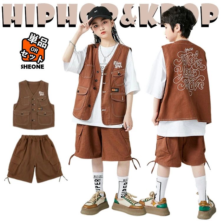 ベスト 半袖 夏 キッズ ダンス衣装 セットアップ レトロ ショートパンツ トップス カジュアル パンツ カジュアル ダンスウェア ヒップホップ ジャズダンス ポッピング 演出服 練習着