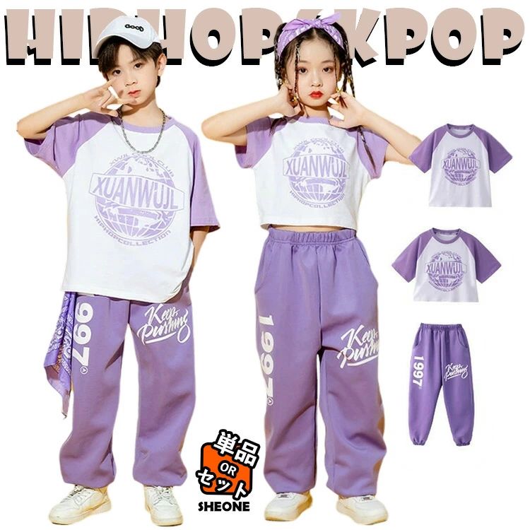 半袖 紫 夏 キッズ ダンス衣装 セットアップ カジュアル tシャツ パンツ カジュアルシャツ トップス ロングパンツ ダンスウェア ヒップホップ ジャズダンス ポッピング 韓国 演出服
