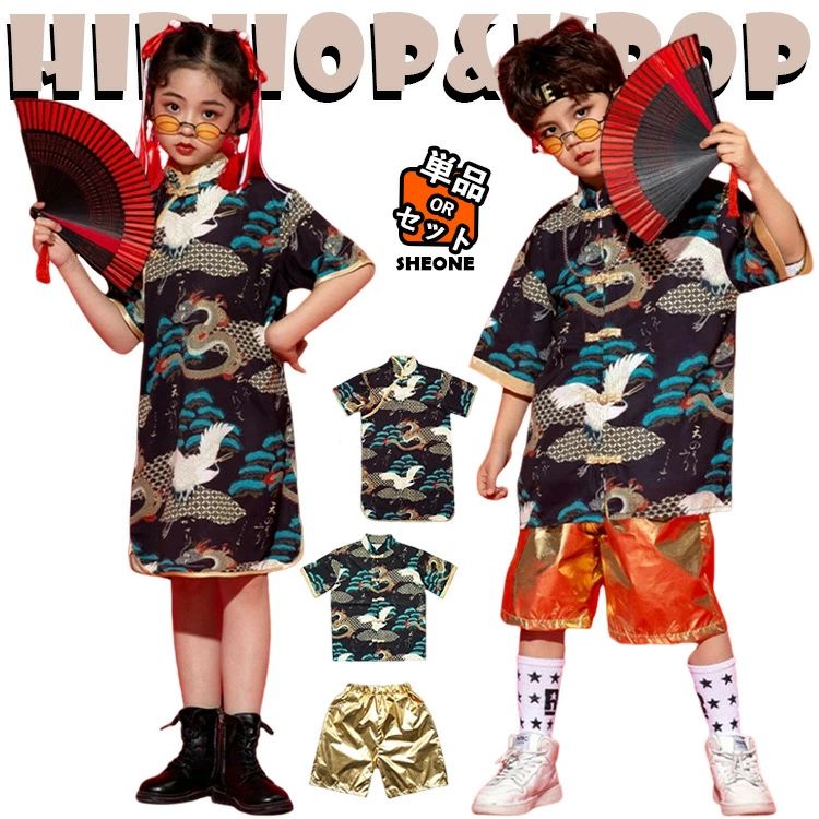中国風 チャイナドレス 龍柄 キッズ ダンス衣装 セットアップ チャイナ トップス ダンスウェア ヒップホップ ジャズダンス ポッピング 写真撮影 中華服 漢服 子供服 ステージ 演出服