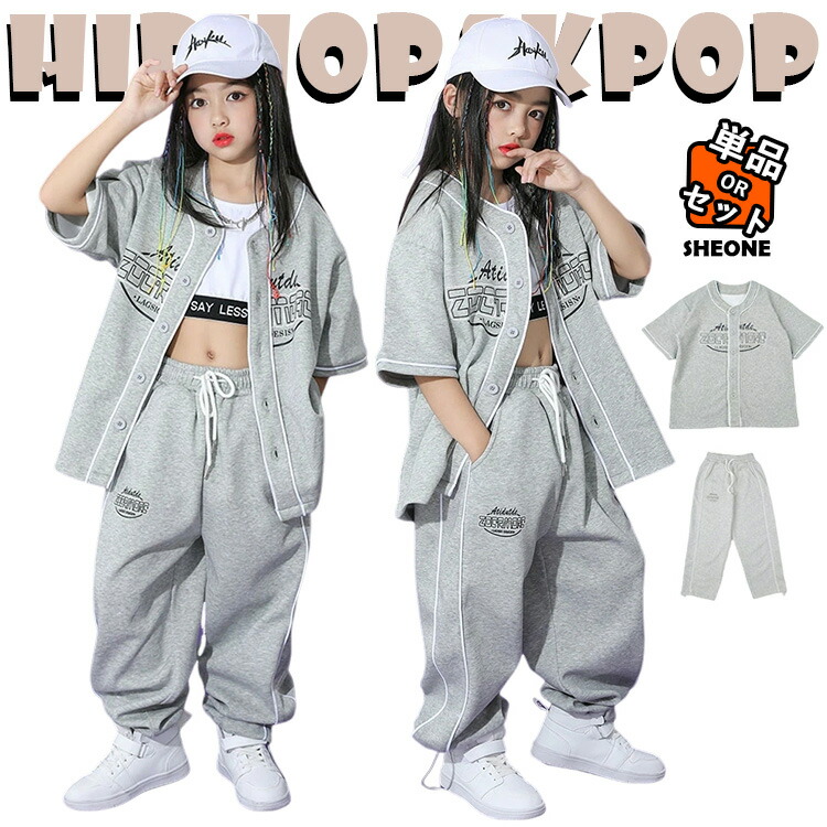 グレー ベースボールシャツ 半袖 キッズ ダンス衣装 セットアップ 男の子 女の子 トップス パンツ タンクトップ カジュアル ダンスウェア ヒップホップ ジャズダンス ポッピング 演出