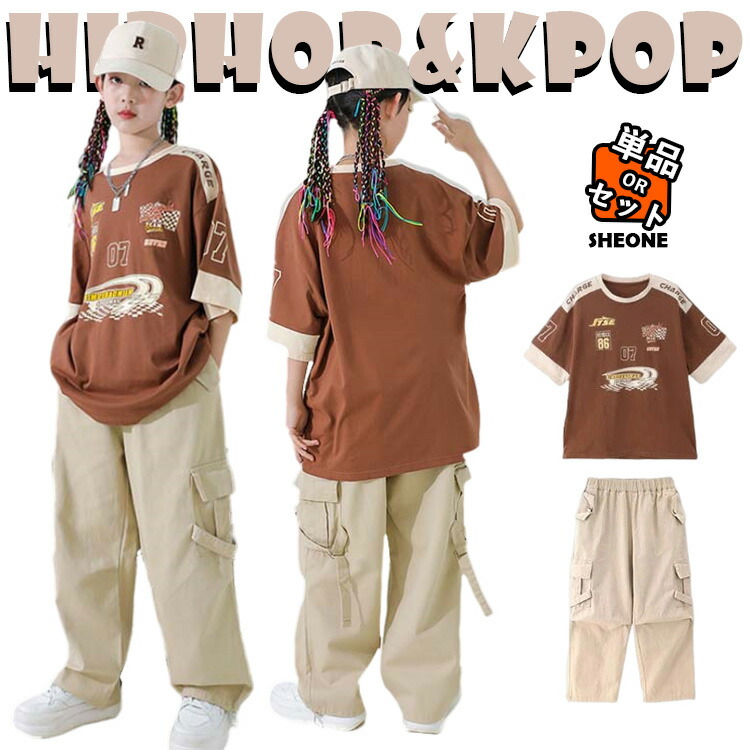 茶色 キッズ ダンス 衣装 発表会 レトロ サルエルパンツ ヒップホップ 韓国 ダンス衣装 セットアップ 半袖 tシャツ トップス ロング カーゴパンツ ゆったり ストリート オシャレ