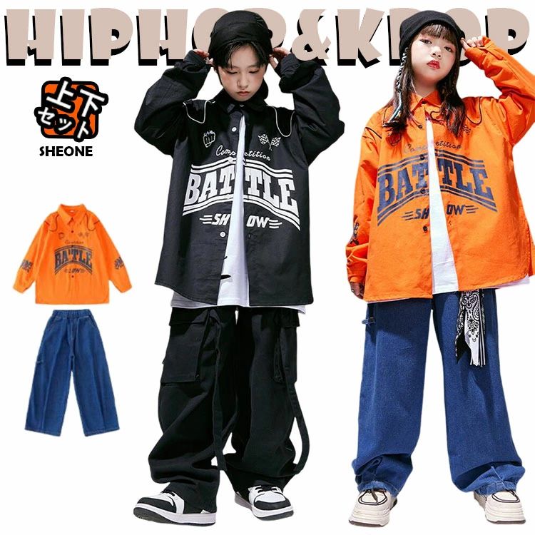 シリーズ 橙色 キッズ ダンス衣装 セットアップ 女の子 男の子 パンツ トップス 長袖 シャツ カジュアル 子供 ストリート ダンスウェア ヒップホップ ジャズダンス ポッピング