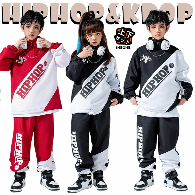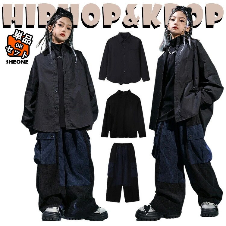黒 キッズ ダンス 衣装 セットアップ おしゃれ かっこいい ゆったり かわいい 長袖 女の子 男の子 トップス パンツ インナー ジャズダンス ヒップホップ 派手 ファッション 韓国 kpop