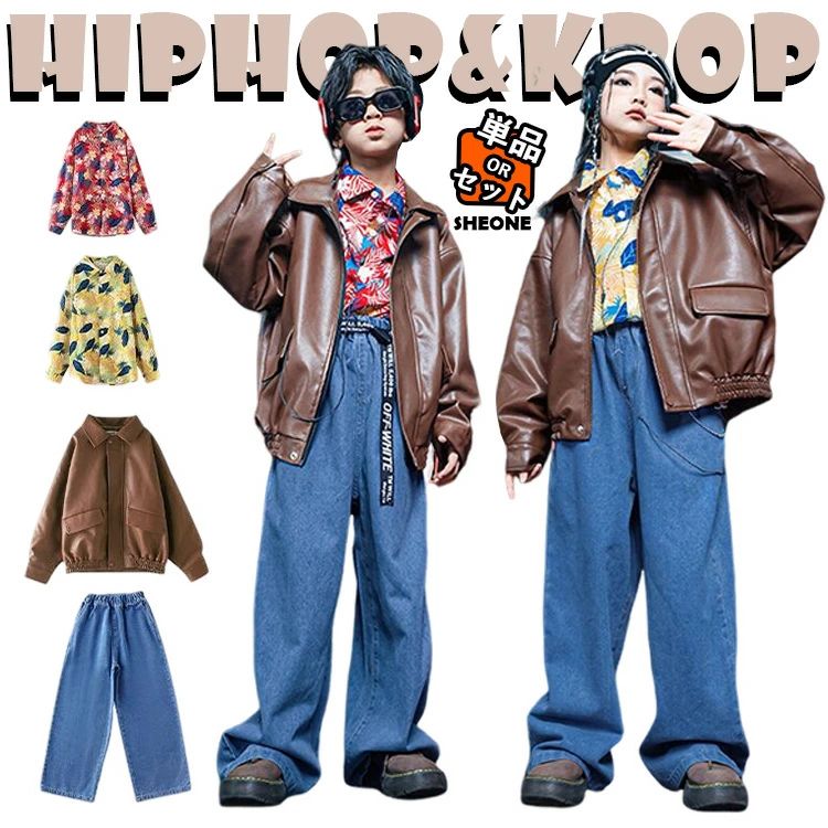 革コート ハワイ風 キッズ ダンス衣装 セットアップ 女の子 男の子 パンツ トップス 長袖 シャツ カジュアル 子供 ストリート ダンスウェア ヒップホップ ジャズダンス ポッピング 演