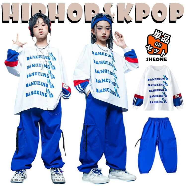 青 キッズ ダンス 衣装 セットアップ ゆったり おしゃれ かっこいい かわいい 可愛い 長袖 女の子 男の子 トップス パンツ ジャズダンス ヒップホップ 派手 ファッション 韓国 kpop h