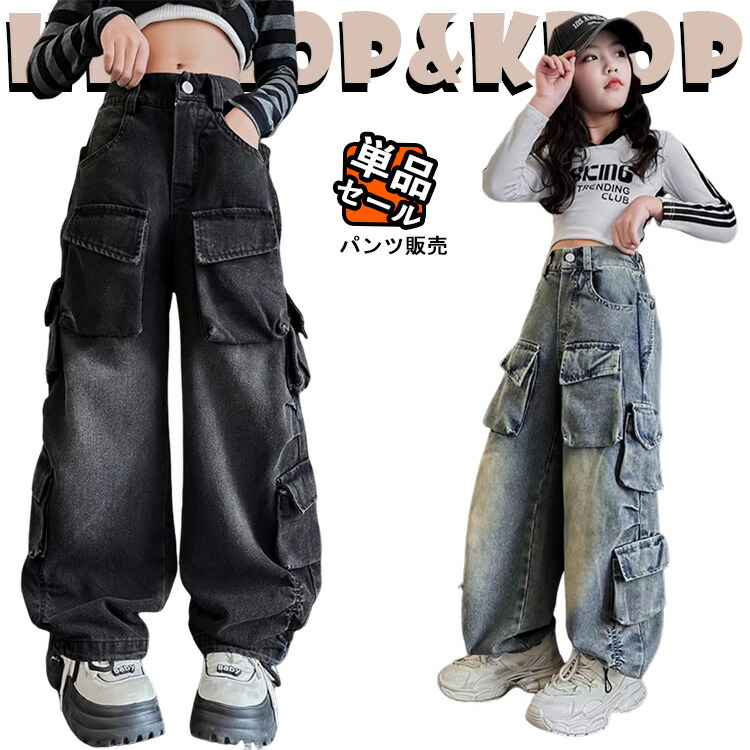 カーゴパンツ 女の子 デニムパンツ キーズ 韓国 無地 ポケット付き 子ども衣装 ジュニア ダークグレー ブルー 灰色 春秋 ゆったり 女の子 子供服 ワイドパンツ ロングパンツ ボトムス