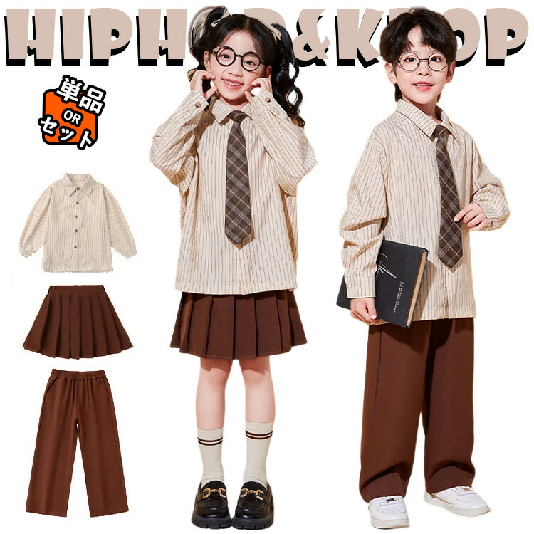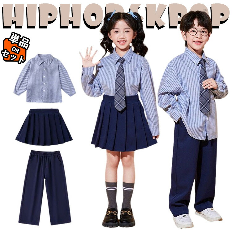 ストライプ柄 子供服 フォーマルスーツ キッズ ダンス衣装 セットアップ シャツ プリーツスカート パンツ 長袖シャツ ワイドパンツ 女の子 男の子 韓国 上下セット 発表会 ゆったり