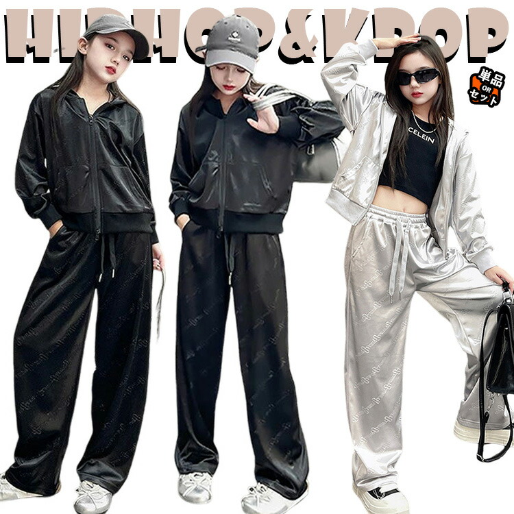 シルバー 黒色 キーズ セットアップ ジップアップ パーカー ワイドパンツ キラキラ ジュニア ジャージ 長袖 韓国 無地 春秋 ゆったり 女の子 カジュアル 上下セット 子供服 練習着 12