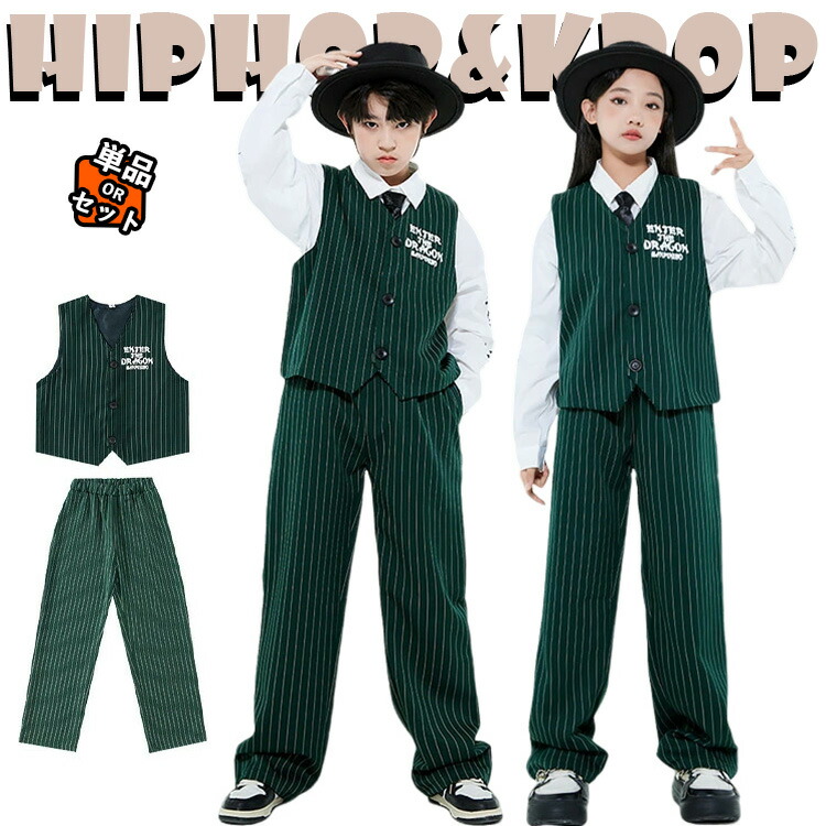 トップス ベスト ユニセックス衣装 キッズダンス衣装 セットアップ ストライプ柄 ジャケット 長袖 トップス 黒 迷彩 カーゴパンツ サルエルパンツ ジャズダンス ヒップホップ 韓国