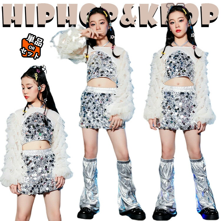 白 トップス キラキラ キャミソール スカート キッズ ダンス衣装 セットアップ 上下セット 韓国 jazz おしゃれ 女の子 かっこいい かわいい へそ出し 長袖 カジュアル ダンスウエア