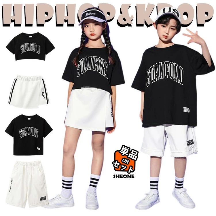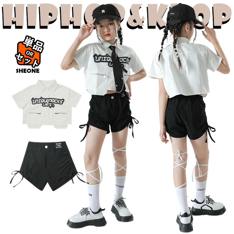 へそ出し 白 黒 半袖 キッズ ダンス衣装 ダンスウェア セットアップ 女の子 ショートパンツ トップス 子供 ストリート ヒップホップ ジャズダンス ポッピング 韓国 - 演出服 練習