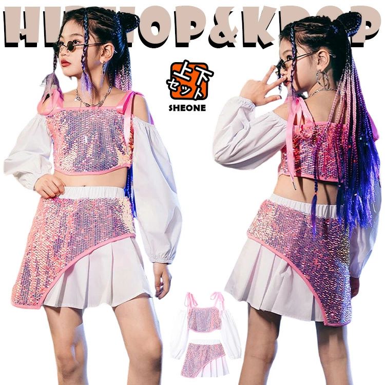 スパンコール 半袖 キッズダンス衣装 キラキラ 演出服 ドラム奏者 ジャズダンス ヒップホップ チア 女の子 チアガール 韓国 hipop上品 白 キャミソートップス へそ出し 肩だし カーゴ