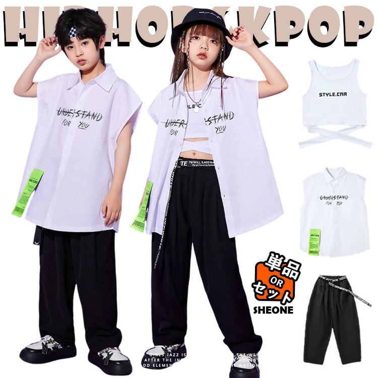 キッズ ダンス衣装 セットアップ 半袖シャツ 女の子 男の子 ゆったり おしゃれ カジュアルシャツ トップス パンツ 黒 ロンパン シャツ タンクトップ ヒップホップ ジャズダンス 韓国