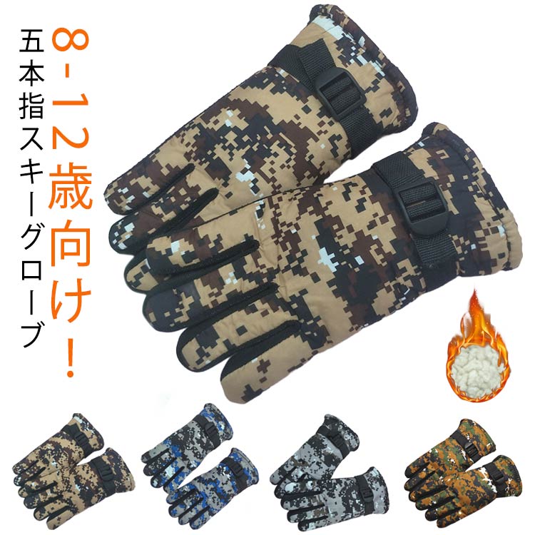 8-12歳向け 五本指 男の子 防水 通学 男の子 男子 撥水加工 ジュニア 子供用 こども 手袋 男児 5本指手袋 てぶくろ 学校 通園 スノー手袋