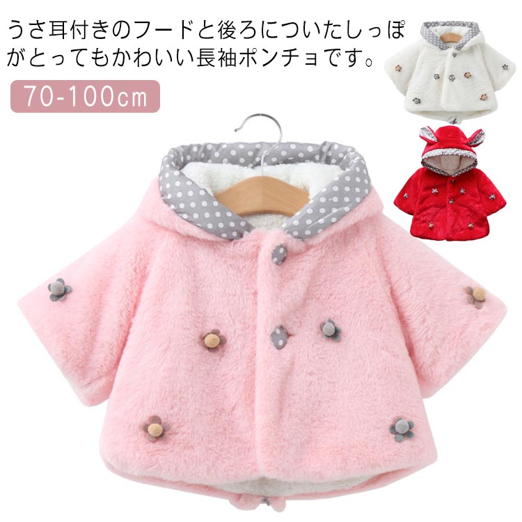 ファーコート あったか もこもこ ふわふわ ポンチョ うさぎ耳 ベビー服 防寒着 ポンチョ 秋冬 ストール マント 赤ちゃん おしゃれ 可愛い 女の子