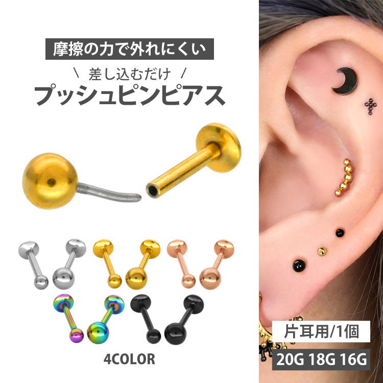 ボディ ピアス プッシュピン 軟骨 つけっぱなし 16G 18G 20G ラブレット トラガス サージカルステンレス 丸玉 ボール 片耳用